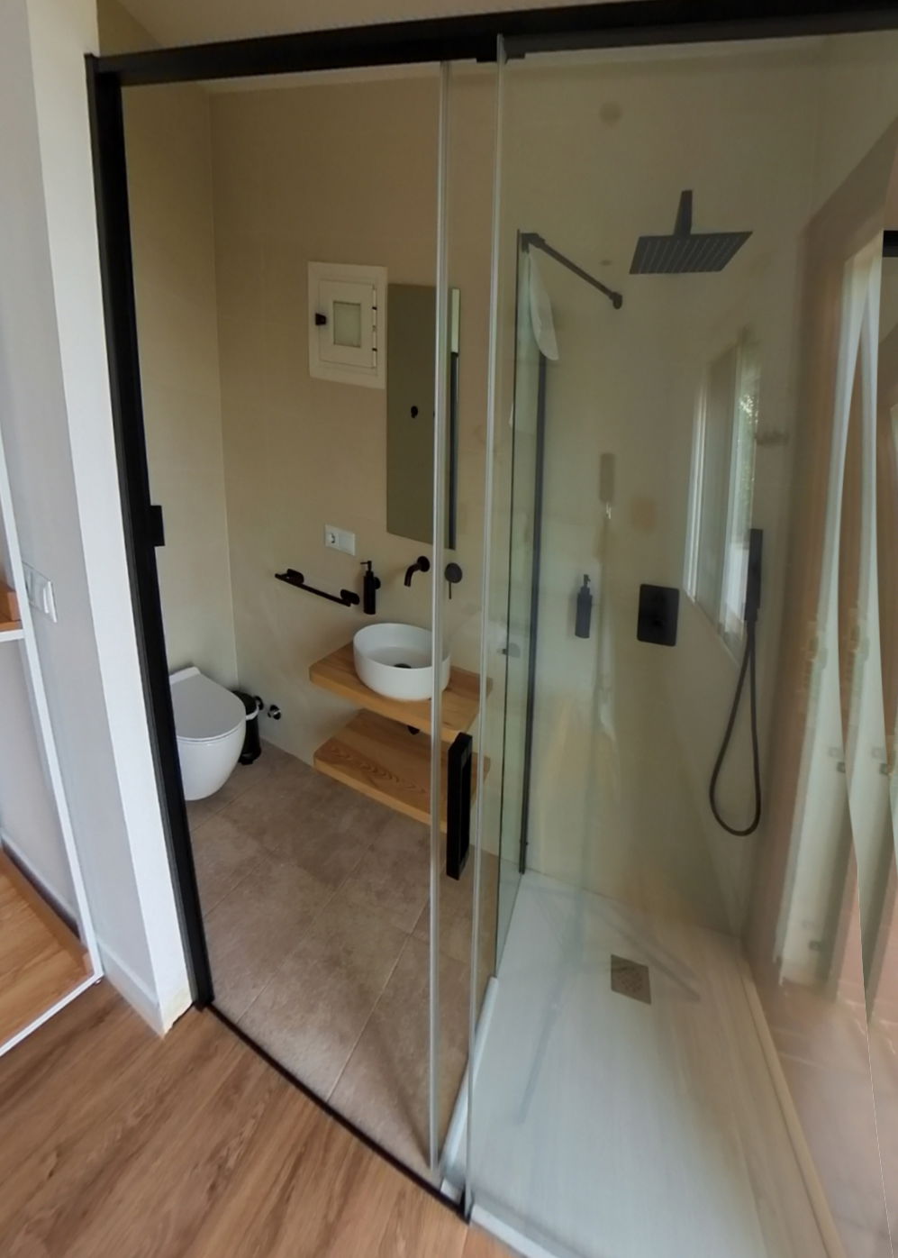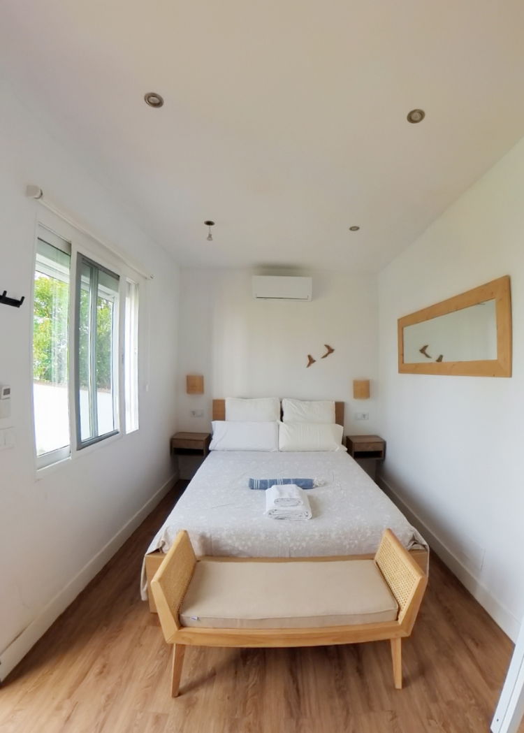 Cuenta con cocina, 2 dormitorios dobles, 2 baños, salón-comedor con sofá cama, porche, piscina y parking privados. Uno de los dormitorios (reformado en 2025) es independiente a la casa, está en la zona de la piscina, con baño en suite, para más privacidad.