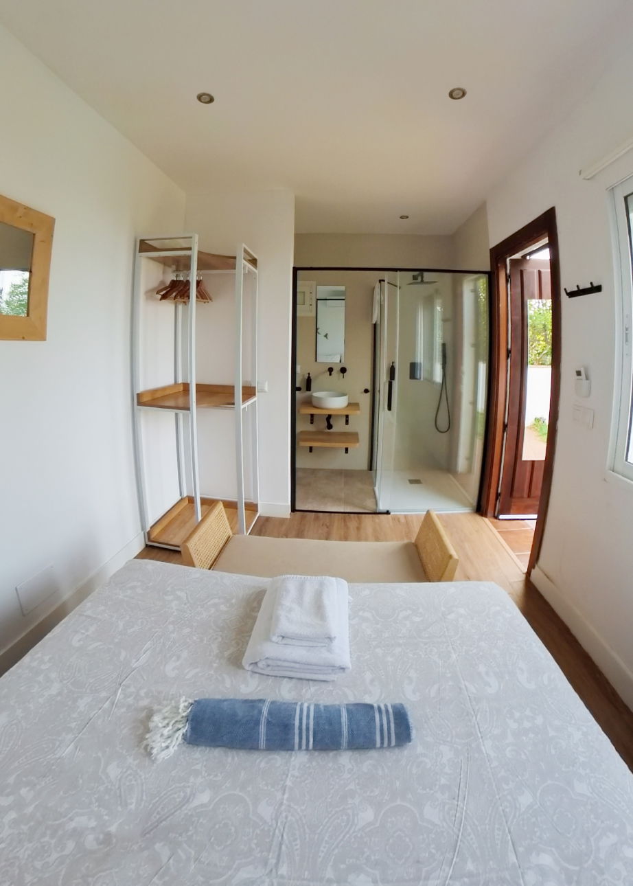 1. Reservar la casa entera, solo con una habitación (capacidad máxima 2 adultos y 2 niños). En este caso cerraríamos la segunda habitación (precio más económico).